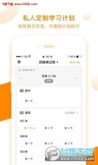 独家研发学习计划系统,搭配54小时课程体系和5年真题题库,朗播四六级保你过级,轻松提分!