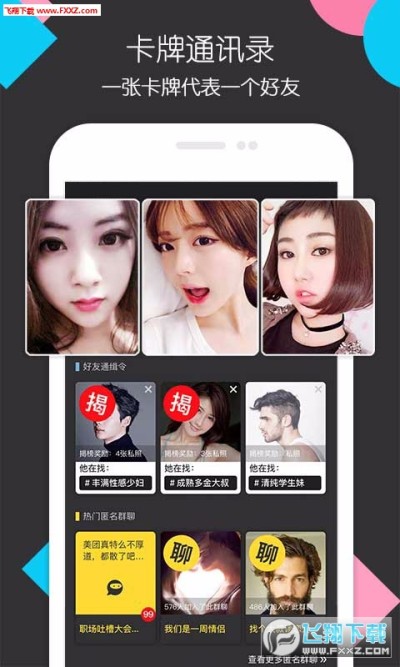 1.卡牌通讯录:打破常规的列表式通讯录,升级为互动卡牌,每一张卡牌代表一个好友
