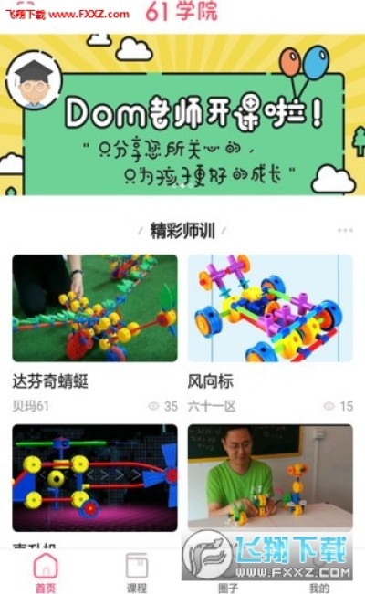 61学院是一款为幼师提供教学辅助的app,包括师训,教案,圈子等功能,老师可以在里面学习或分享自己的教学心得和资源,帮助大家一起提升教学质量。
