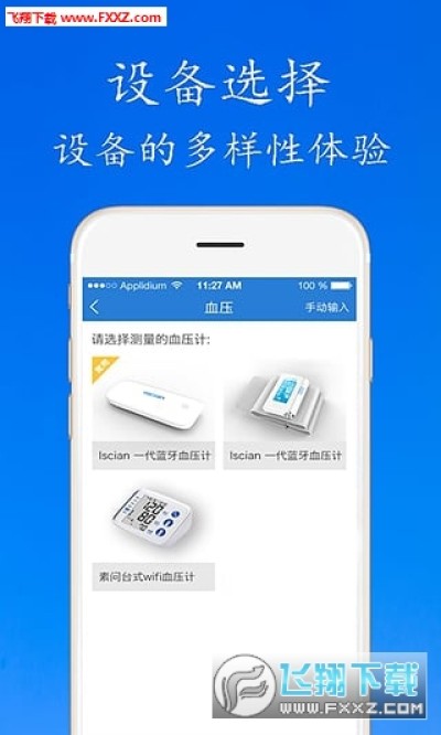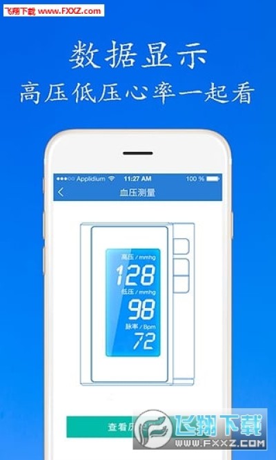 [血压测量]:用户通过一键点击“开始测量”按钮,很简便的与血压设备进行通讯,准确的显示测量结果,在每次测量完成的时候,在用户授权同意写入的情况下,应用会自动将测量得到的舒张压,收缩压,心率值写入到健康应用中,用户也可以通过健康应用查看自己的血压和心率数据变化;