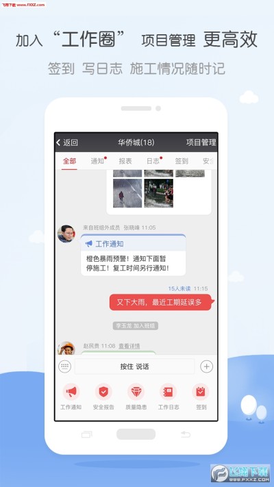 吉工家项目管理app,建筑企业管理人员、项目负责人或工头可以在工作圈里更轻松的管理施工项目、安排工作、跟踪项目进度和检验材料质量。同时,