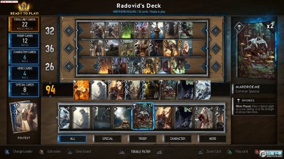这不,就在《血与酒》发布消息后的不久,CDPR就放出了消息,这回他们真的将《昆特牌》抽离出了游戏,而真的做成了一款独立的卡牌对战游戏。在预告片中,玩家化身杰洛特、叶奈法等游戏角色,在酒馆中酣畅的享受昆特牌的乐趣…看起来倒是十分让人期待。不过真正了解卡牌游戏的玩家,多少还是会明了,原版的《昆特牌》本质是个卡牌收集游戏,也并没有卡牌强度平衡的说法,后期入手的强力卡牌足够填充整个卡组,而弱的卡牌除了过渡就没有其他存在意义。放在一轮游的单机游戏之中,玩家们可以享受收集卡组的乐趣,而如果重心转移到了线上玩家对局,就意味着整个游戏需要进行一番不小的改造。