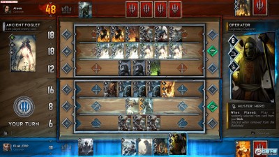 《昆特牌》中的各种牌没有”法力消耗值“的说法,就是说你第一张牌就可以打出12点力量值的杰洛特。这样的设定其实也为平衡性埋下了隐患,后文我们会具体讲到。