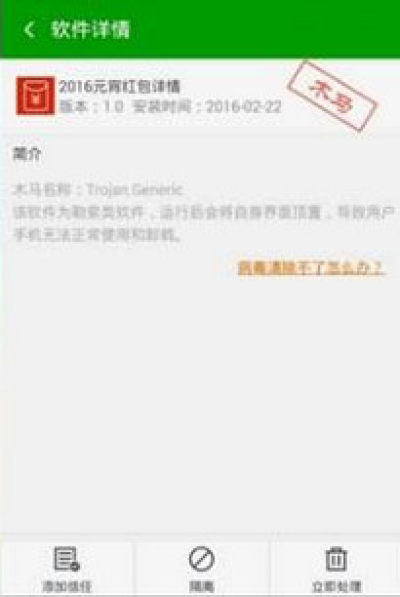 手机有顽固病毒怎么办,迷你整理了360木马专杀安卓版给大家下载使用,360木马专杀工具是一款能够查杀600种以上的恶意木马,保卫您手机的安全健康,不用再担心被木马入侵了,依靠360手机安全中心的云查杀技术,能够识别超过600种以上的恶意木马软件,让木马统统无处可藏。