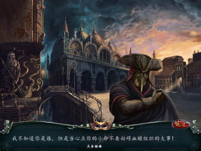 冷酷面具:神秘威尼斯是一款冒险解迷单机游戏,游戏中 两位年轻的女士失踪了,现在将由你来找到她们,你是否能够成功救出两位美女呢? 冷酷面具:神秘威尼斯游戏中当两位年轻的女士失踪时,她们刚刚乘坐威尼斯凤尾船离开了化妆舞会。凤尾船的驾驶员是一位带着狂欢节面具的男人。追踪他的下落,找到失踪的母女,同时你将发现一个可怕的秘密,到底是什么秘密呢?将由你来揭晓。