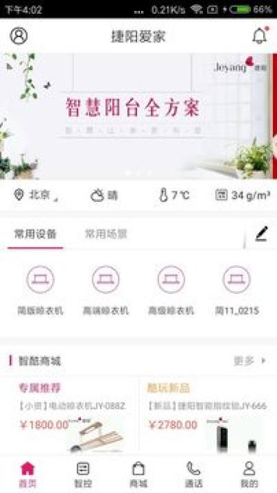 通过手机APP控制晾衣机照明、烘干、消毒、升降等功能,让生活更智能!除菌更健康,晾衣选捷阳!