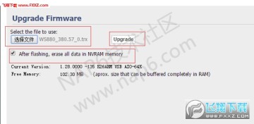 6、到这里WS880刷入第三方固件其实已经完成了,如果你想把固件换成梅林话,直接进入固件升级页面,解压下载好的WS880_380.57_0.zip,得到WS880_380.57_0.trx文件;在固件升级页面上传固件,点击升级,等待2/3分钟;重新输入192.168.1.1进入路由器页面,就能看到梅林固件的欢迎界面了。(注:更换固件时请注意查看 JFFS是否开启;)