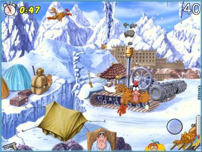 超休闲的射击类游戏,也算是第一人称射击了,游戏中玩家要在画面中射杀各种各样的小鸡以及宝物。