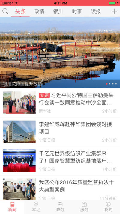 “宁夏日报”聚焦本地,借助全网抓取技术为您带来权威快速、深度多元的海量新闻资讯,通过智能分析引擎实现个性化推荐,满足您与众不同的阅读需求;借助地理定位技术,实现5市22县区用户精准推送,为您呈现各具特色的本地新闻及生活资讯。