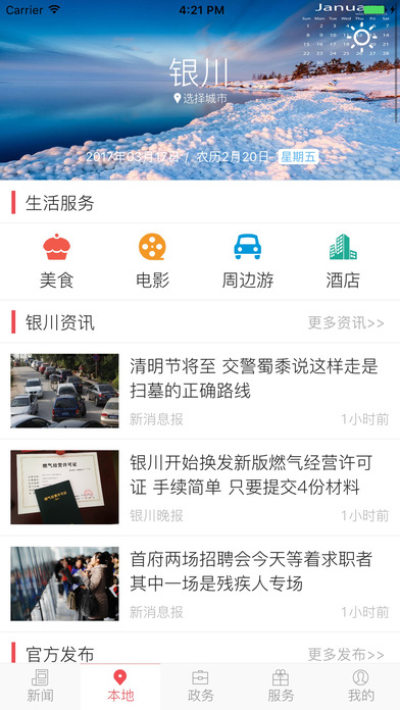 宁夏日报客户端努力接入各类生活服务平台,为您提供一站式移动生活解决方案,实时路况、水电缴费、社保查询、医疗挂号、机票预订、酒店住宿、餐饮团购……随时随地,拇指一点,轻松搞定。