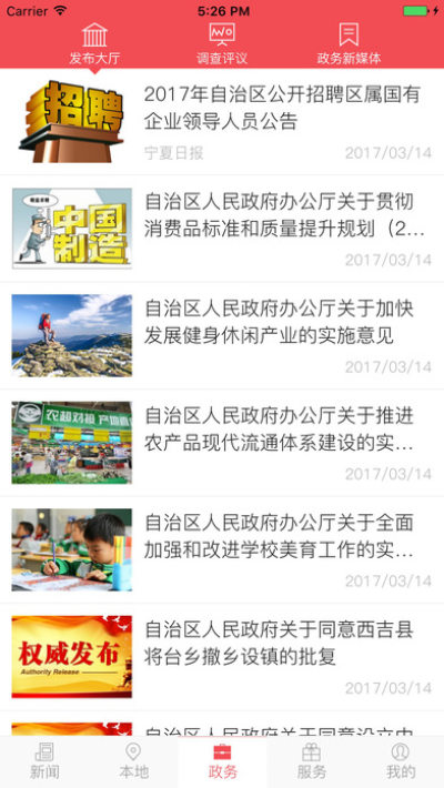 “宁夏日报”打造移动政务平台,对各级政府出台的实施意见、办法、决定进行权威发布,第一时间深入解读;搭建移动办事大厅,让您足不出户,快捷办理;开辟网络问政专属通道,拓宽各级党委、政府与群众沟通的渠道;提供回复排行,督促政府部门倾听民声,拉近政民距离。
