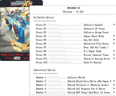 这款洛克人X8修改器是目前最好用的一款了,玩洛克人X8又喜欢作弊的你怎么能缺少这款修改器哟。