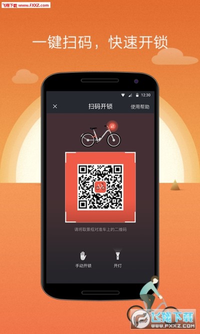 5、扫车身上的二维码,就会远程开锁。(车身有两处有二维码,一处是车龙头上面,一处是锁上面)