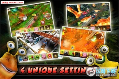极速蜗牛(Snail Derby)》是一款蜗牛题材的竞速游戏,掠去了蜗牛骨子里“慢”的外衣。让我大家对蜗牛刮目相看。赶快加入《极速蜗牛》的行列,像出膛的炮弹,感受速度与激情。到车库去,驾驭你的野心。如若不懂,游戏还会给你一点温馨的提示,帮你获得属于自己的坐骑!通过一次又一次的狂飙、漂移、急转弯和跳跃,带来风驰电掣的冲刺体验。挑战排行榜的最强者吧!