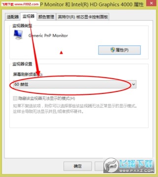 5、点击“监视器”之后,点一下“画红圈”的部位,看如下图所示,我们可以根据自己的情况,选择合适的屏幕刷新频率。