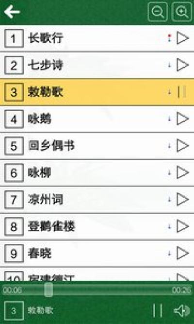 背景音乐为唐诗古典音乐,贴切主题,赏诗时感觉很是美妙。