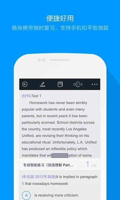 3. @cuiwentong:最吸引人的地方就在便携性,外出时不用背着厚重的课本出去了,可以用手机来练习,学习累了也可以借助休息的时间来练习题目。