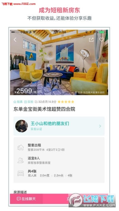 您还可以随时随地在手机上选择自己所喜欢的房间,查看这些房源的照片,了解房源和房东的介绍以及房源的价格等,并与房东进行在线沟通,第一时间掌握房屋详情,轻松完成预订。您也可以从这些房东那里了解到最正宗的当地文化和旅游信息,最终完美的规划自己的旅程。