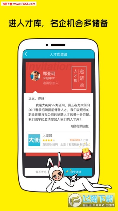 招聘企业主动发起邀约,及时查看职位邀约,让机会找到你;