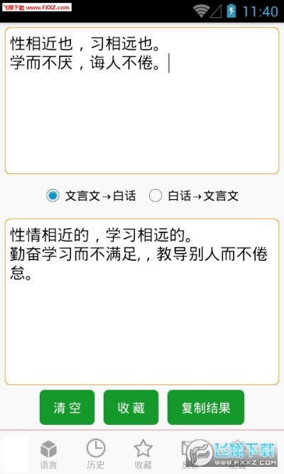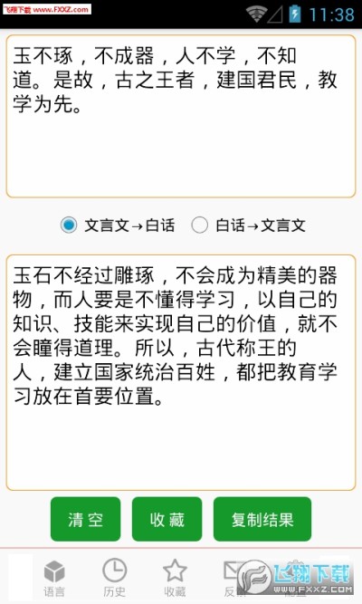 翻译文言文app是一款文言文翻译学习教育软件,内涵大量文言文资料,帮助你轻轻松松学习文言文,支持文言文翻译为白话文和白话文翻译为文言文。翻译文言文app让你看懂文言文。需要的朋友可以下载。