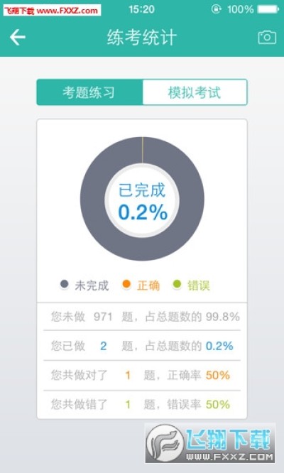 *专业练考统计,让学员快速了解自己答题题数以及答题正确率或错误率。