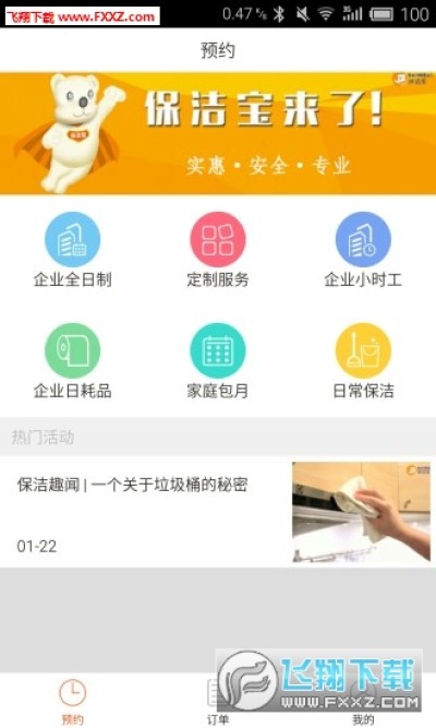 保洁宝最新版提供日常保洁,企业日耗品,企业小时工,企业全日制,家庭包月,定制服务等企业和个人家庭的保洁服务,价格便宜公道,服务质量高!