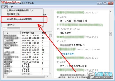 3、有需要对删除的聊天记录进行恢复的,可以选择软件界面中的“文件”“恢复已删除的微信聊天记录”菜单即可。