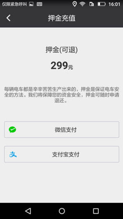 • 扫描车身二维码,押金充值,开锁用车;