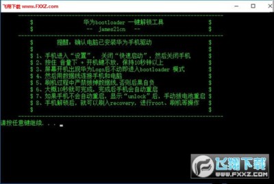 华为解锁bootloader一键解锁工具是一款可以将华为手机解锁 的bootloader 软件只需要关闭你的手机,然后按住 音量下 + 开机键 保持10秒以上,然后进入 bootloader 模式后连接电脑,