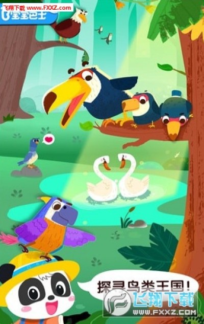 快看,鸟宝宝破壳而出啦!宝宝快和小鸟们一起去寻找食物吧!与老鹰、天鹅一起在激流中捕鱼;与鹦鹉、巨嘴鸟共同在丛林中飞行,寻觅新鲜水果,为鸟宝宝们准备一顿美味大餐!(捕鱼摘水果,锻炼宝宝反应能力。)