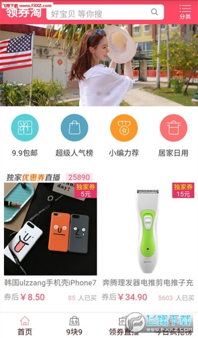 领券淘app是一款可以领取各种网上购物优惠券的app,在领券淘app上用户可以领取天猫、淘宝、京东等等多加购物平台的优惠券,买东西更划算,还有9.9包邮专区哦,更多惊喜等你来下载体验吧!