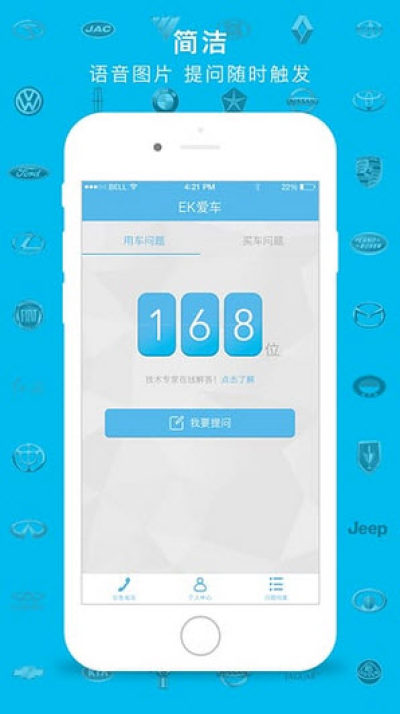 EK爱车最新版是一款为有车一族的朋友们打造而来的汽车问答服务类手机平台,这里有最专业的汽车专家为您提供解答服务,,专为用户解答各种汽车疑难问题,让你实时能够得到最满意的解答方案!