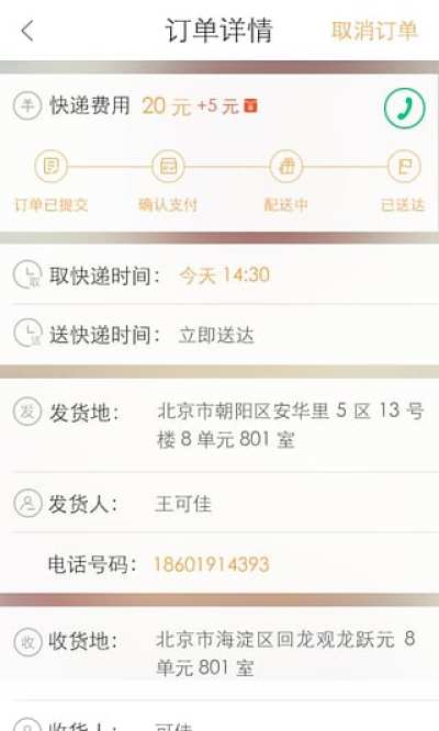 2、快速响应:您下单后系统自动将任务发送到离您最近的快递员手机上,即刻上门为您服务。