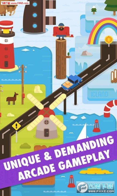 由曾开发过《疯狂的伐木工》和《指尖冲浪》等奇葩趣味手游的开发商Digital Melody Games推出的一款休闲益智手游,画风精致,玩法十分魔性,游戏中你需要和时间赛跑,让正常行驶的车辆安全通过岛屿,如果铺路不及时,那么车辆就会从岛屿掉落下去!