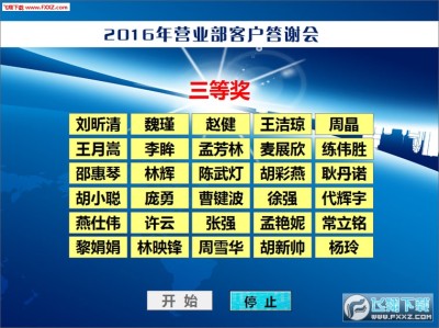 背景音乐:可自由设置背景(欢迎界面背景、抽奖背景)音乐(抽奖音乐、中奖音乐、颁奖音乐);