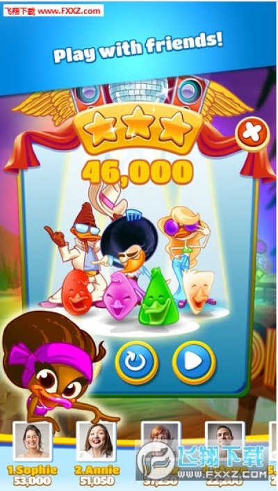 《迪斯科鸭子 Disco Ducks》是一款独具一格的对对碰游戏。游戏拥有精美的画面,你将会看到一群Q萌的鸭子扭动着可爱的身体等待着你来跟他们一起跳舞。游戏的玩法跟传统的对对碰一样:交换两个不同的单位,组成至少3个在一条线上就可以将它们消除啦。当有趣幽默的背景音乐响起的时候,你会被这群萌物的摇摆逗笑的,随着关卡的加深,还有各种不同种类的鸭子出现,一定会带给你许多惊喜的!游戏中金币无限,快来下载试玩吧!