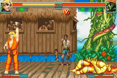这是GBA上的街头霸王游戏,现在的技术PC上已经可以用GBA模拟器完美的模拟出GBA上的游戏。