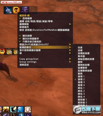 可设置的监视目标包括:自己,目标,焦点,目标的目标,宠物;