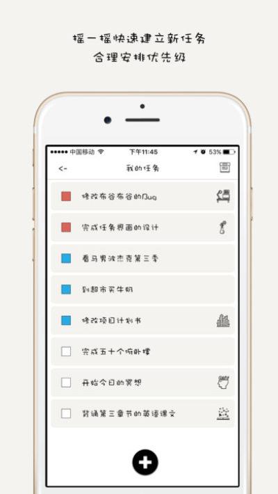 2. 任务管理:摇一摇快速记录任务,可将任务关联某个专属技能,让完成任务成为技能修炼的一部分;