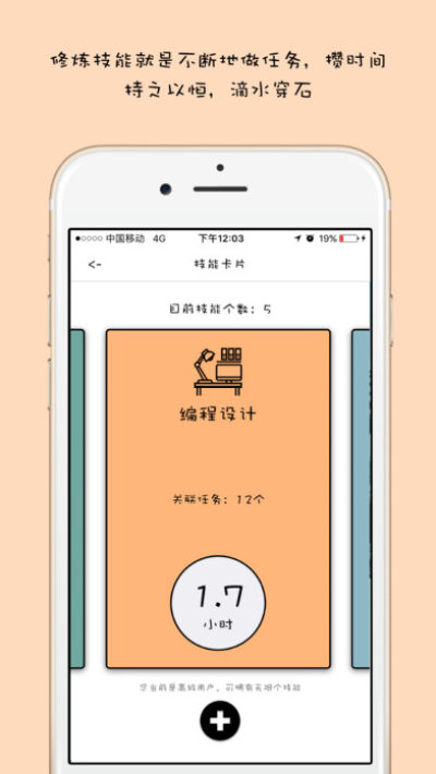3. 技能养成:每个任务均是技能养成的一部分,可将多个任务同时关联一个技能,您所耗费在任务上的时间会被自动统计进该技能的总积累时间中,让技能时间朝着 10000 小时不断迈进;