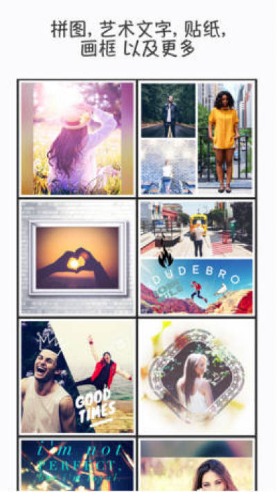 - 精选滤镜:不仅要创意,还要文艺,50+精选滤镜定能满足你躁动的心。美是一种追求。