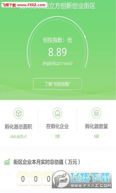 【数据服务】创业扬州APP实时展现了街区总估值、行业占比以及街区孵化器相关数据等,帮助用户直观的了解街区发展现状。