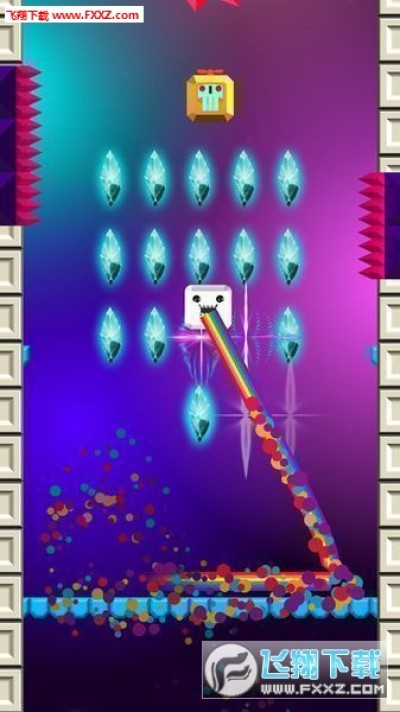 表情冲撞手游汉化版是一款以可爱萌趣的白色表情方块为主角的点击跳跃收集闯关手游,表情冲撞手游汉化版也是一款在原作游戏基础上修改为中文的破解游戏,表情冲撞手游汉化版游戏中玩家将会跟随表情方块一起来到有着霓虹炫彩般的世界里展开属于你的无止境向上喷射收集宝石的冒险之旅,并且在你的喷射的过程中还会出现彩虹一般美丽的炫光哟!