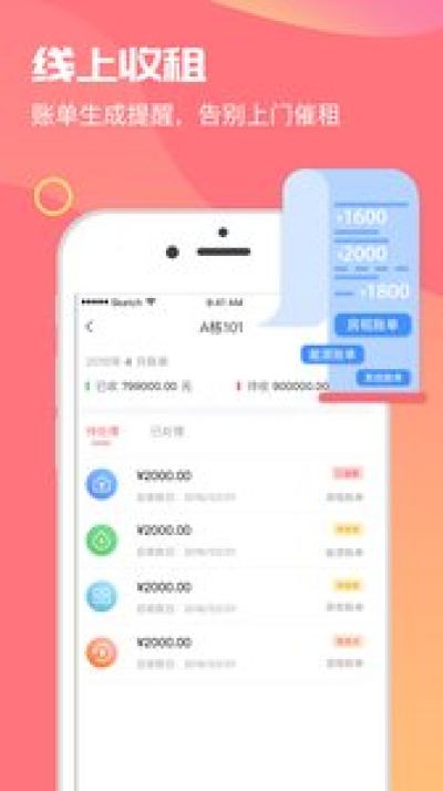 房利来是一款实用的物业管理软件,具有我的钱包、租客信息、能源管理、权限管理、收支管理、账单管理、水电模板等功能,可以查看租客房间信息,对于业主管理租客非常方便,支持一键收租,大大节省时间,全面智能一键处理,欢迎使用。