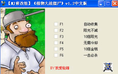 植物大战僵尸年度版修改器使用方法:进入年度版后分别按F1至F6激活各种效果。