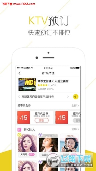 拼K约歌app是一款娱乐社交应用,在线预约好友K歌,线下拼唱,唱歌交友两不误,快来下载体验吧!