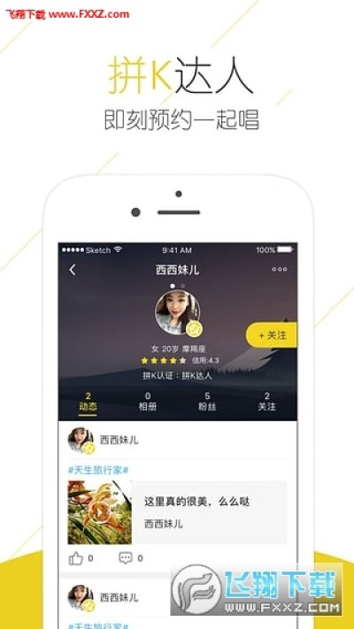 你可直接报名参与其他用户发起的线下拼K活动,并在社区内发布/回复动态,参与话题互动,与相似K歌爱好/明星喜好的好友私聊。