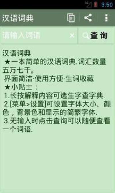 汉语词典.词汇数量 五万七千。有生词本。可查询生字,分享词语。