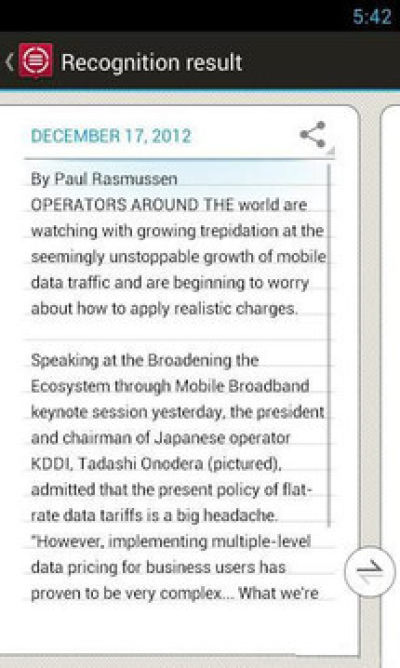 -可将识别的文本发布至 Facebook、DropBox, Twitter 和 Evernote