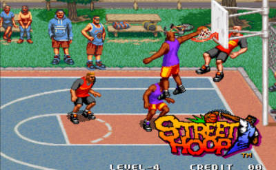 《街头篮球街机版》因为只要用到三个键,对摇杆的精确度要求也不高,所以成了唯一能够正常玩的游戏! 这个游戏的美版、欧版、日版名称都不同,就遵从ROMSET叫做“STREET HOOP”了。游戏里面投篮的动作很酷,积累气槽放超杀也是一个亮点,多少弥补了系统严密性上的缺漏,作为一个1994年出品的游戏,已经很不错了。